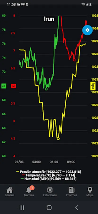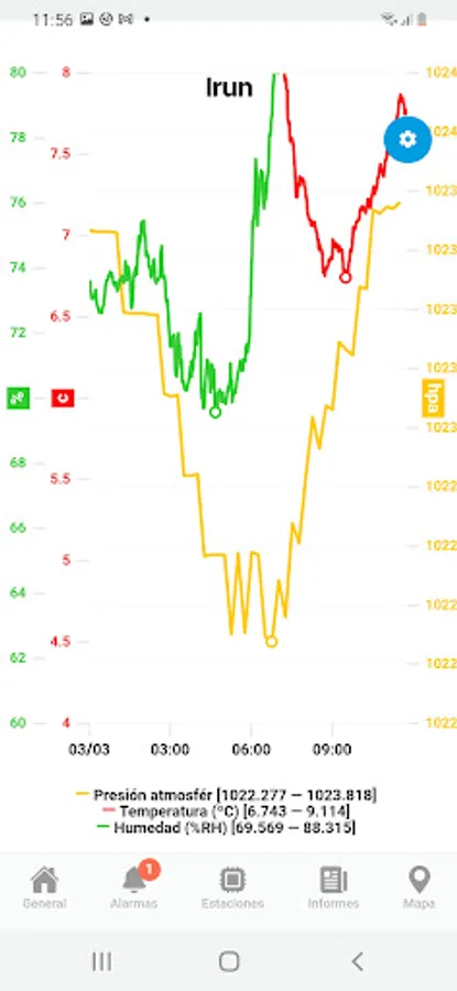 • Visualization of the downloaded records by fully configurable statistical graphs to access the data by time and/or date interval, and selection of the values to be displayed.