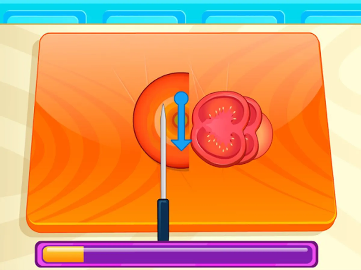 GREAT cooking game fun! Slice the tomato, capsicum, meat and spring onion up ready for your fajitas cooking