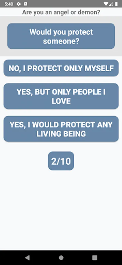 Are you an angel or a devil is a fun and simple game where you have to give the answer to a few simple questions and then you will find out if you are an angel or a devil.