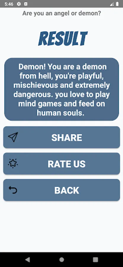 If you have enjoyed this quiz about are you an angel or a devil then please rate it 5 stars and share it, don't forget to write your review to motivate us to do more quizzes like this in the future.