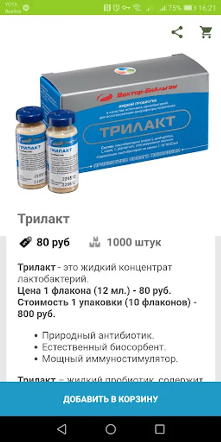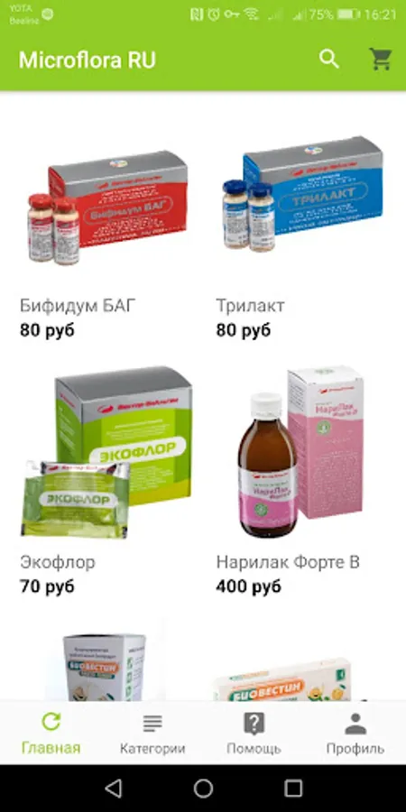 The official application for an online store for the sale of probiotics and fermented sourdough Microflora RU company Vector BiAlgam