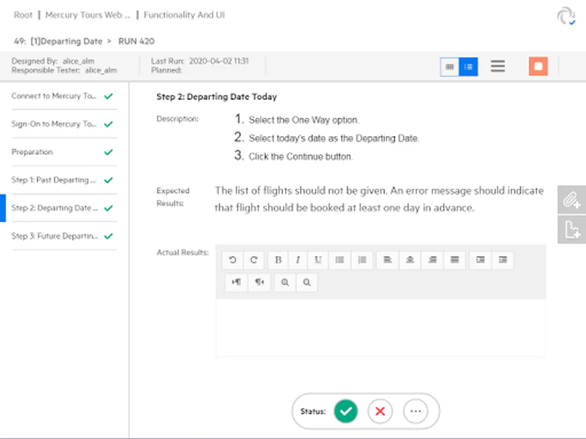 • Run manual tests online while connected to ALM or download tests for an offline execution