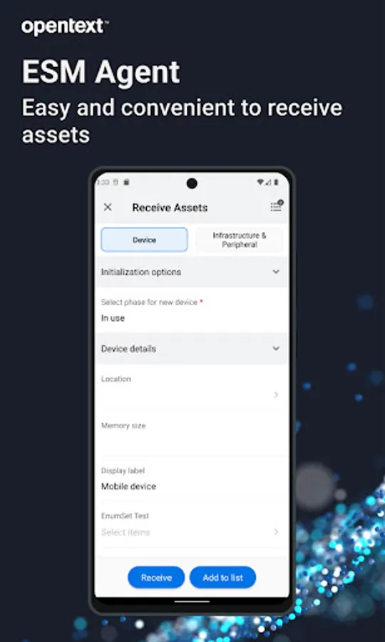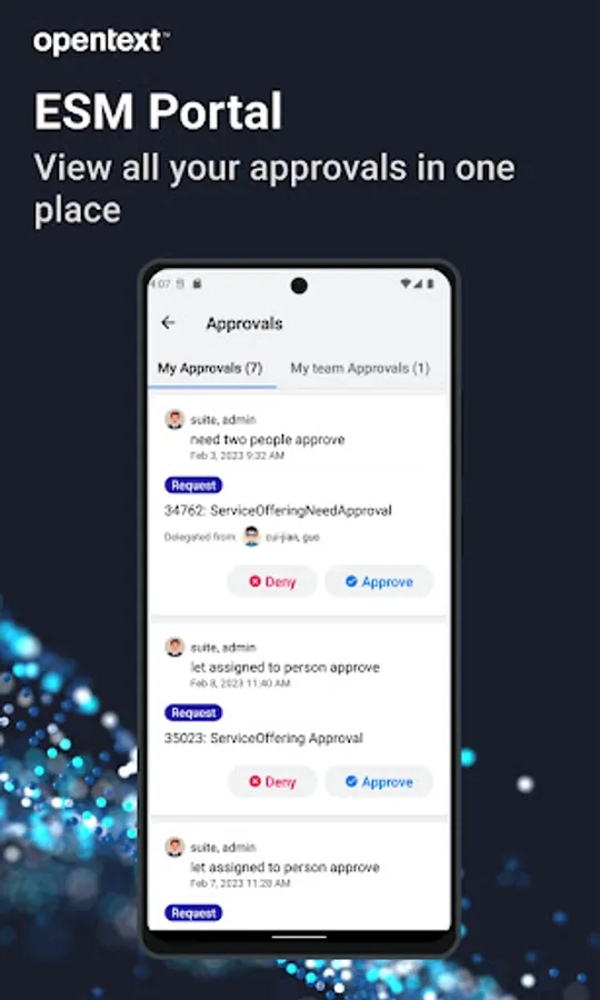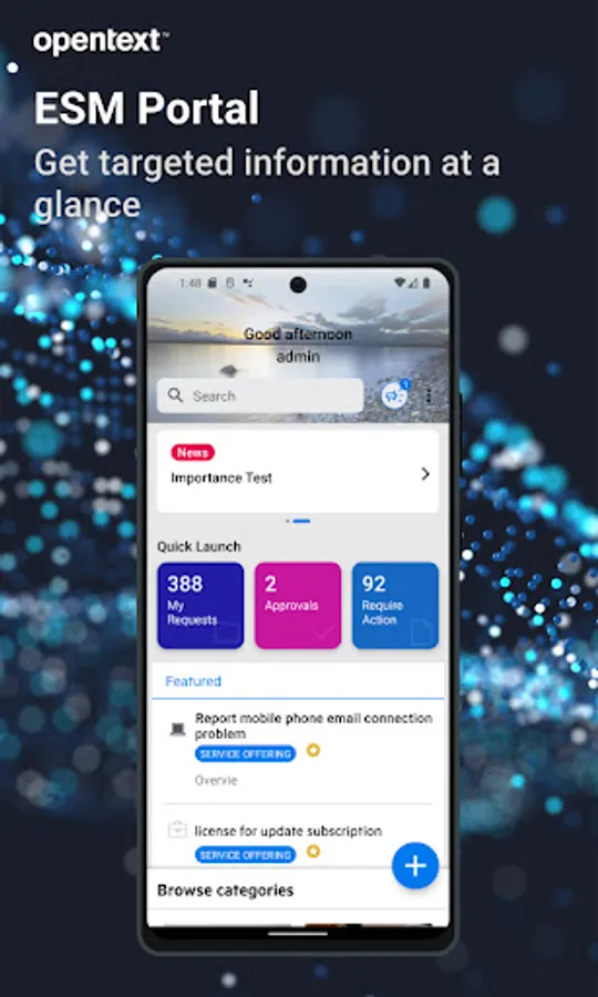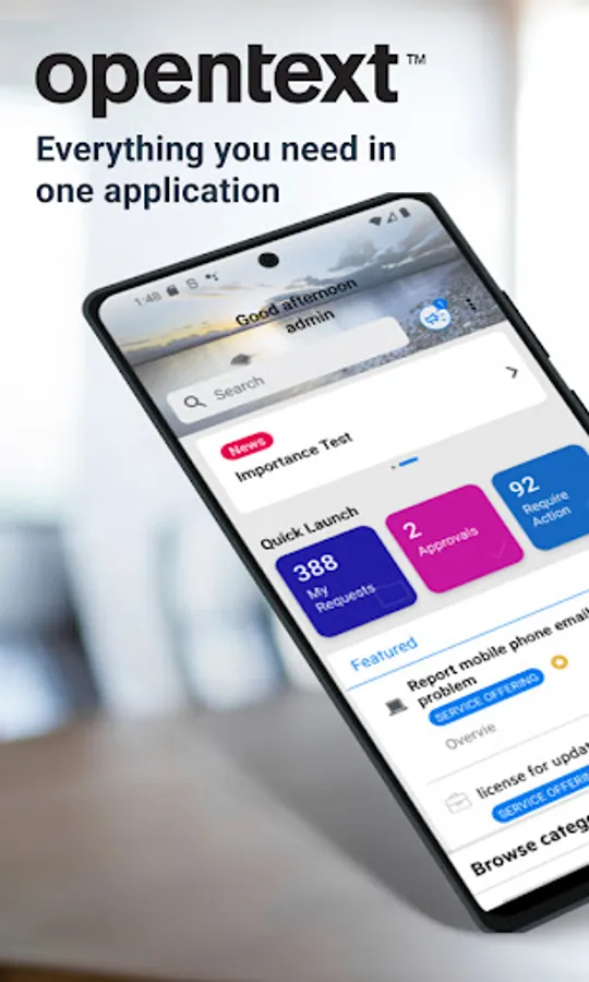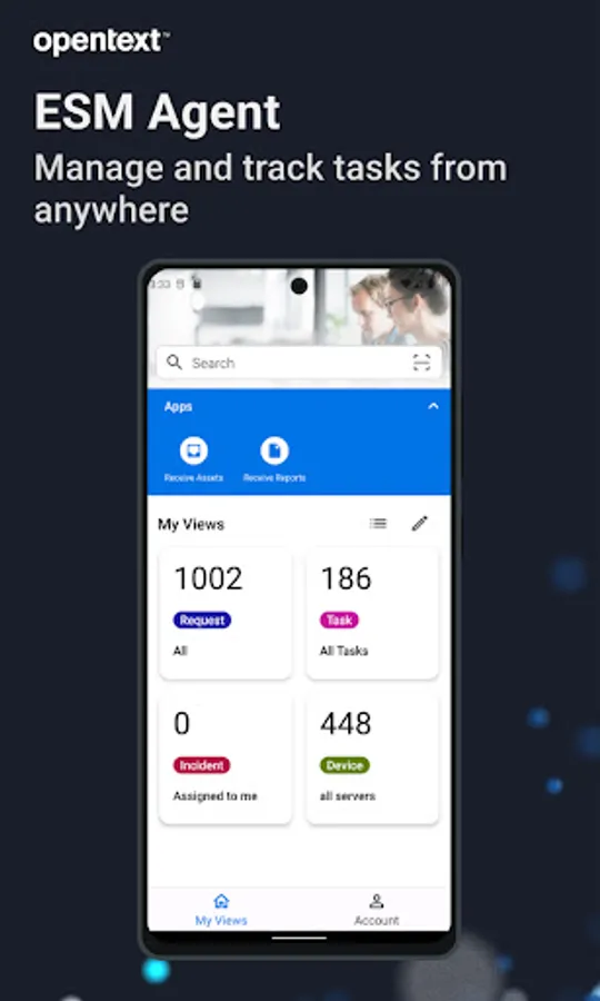 IMPORTANT: This software requires connectivity to the OpenText Service Management Automation Suite. You may activate the mobile app by scanning a QR code from your company’s Service Management Automation Service Portal web site. You may also contact your IT administrator for an activation URL.