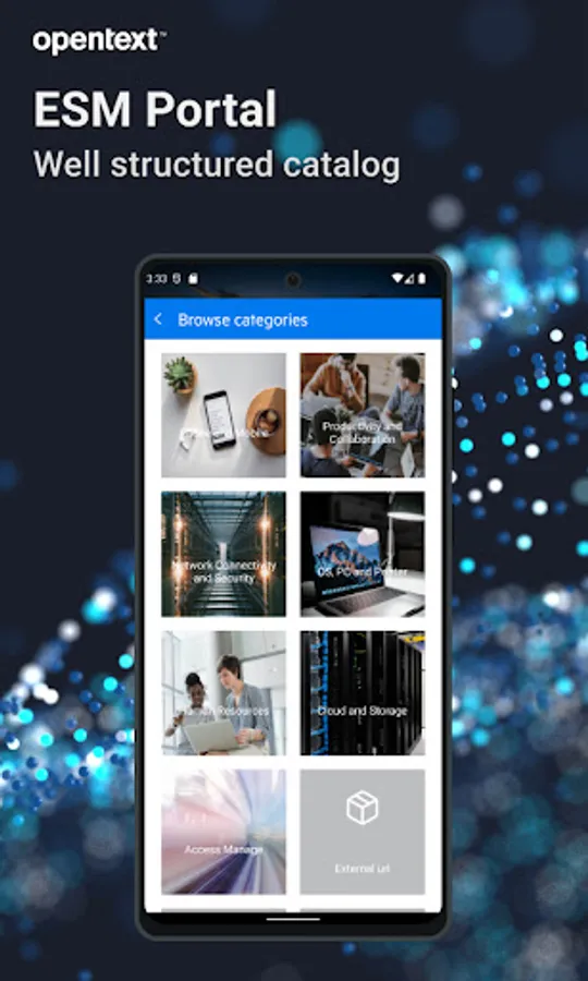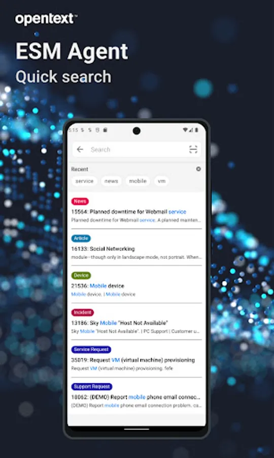 The Enterprise Service Management (ESM) mobile app is the mobile version of Service Management Automation.