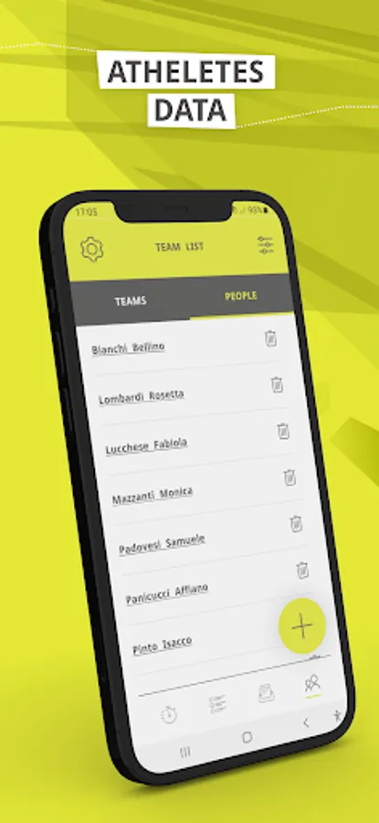 In the athletes’ personal data section we can add a list of people with their main characteristics.