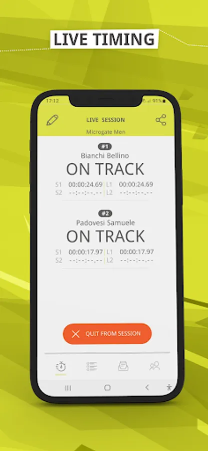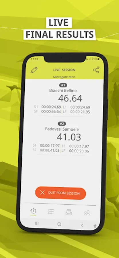 As soon as a timing session starts, I can share a session identification code with “Guest” Users. A User who has installed the HiTiming app and receives a text message or an email with the “Session ID” will launch the App in Guest mode and receive all the remote session data in real time. Once the session is closed by the primary user connected to the stopwatch, the sessions on the remote devices will also be closed automatically. Closed sessions will be available in the Session Archive.