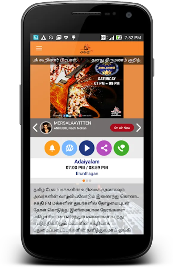 Shakthi FM Mobile app offers a variety of features to empower you to have a wider engagement with the radio station than ever before. Unlike in the conventional radio experience, where you only get to listen, Shakthi FM Mobile app offers you the visual radio features with more interactivity with the programs and DJs you wish to follow. Shakthi FM Mobile app is a property of MBC Networks.