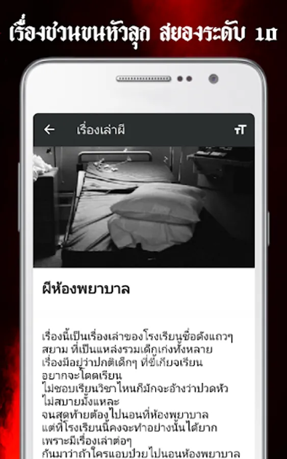 For those who like ghost stories, which are terrifying stories, we recommend "Ghost Tales", which has compiled many terrifying stories here. Ghost stories consist of horror stories. Many, both at home and abroad. Stories of many mysterious locations, such as ghosts in hospitals, ghosts in universities, ghosts, abandoned houses, ghost stories, stories that cannot be proven. The legendary ghost that is reputed to be scary. The actual experience is direct from the people who have seen In this regard, we have included many ghost stories, unseen stories. Here, and we also have updates For you to continue enjoying. Don't wait. Download ghost stories and come to spooky horror together. Ok today