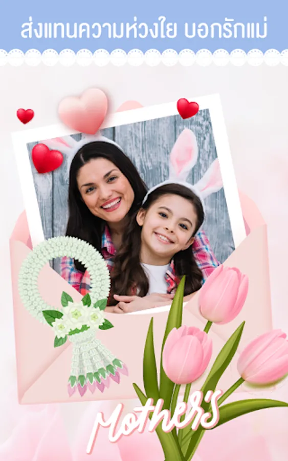 + For sharing and sending to moms Mother's Day Photo Frame Along with the most touching words of Mother's Day Share as an image via social apps.