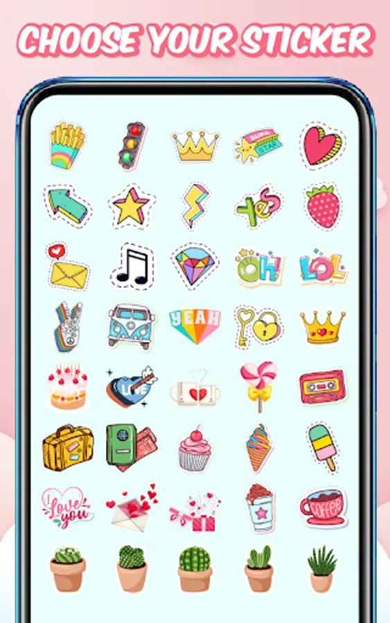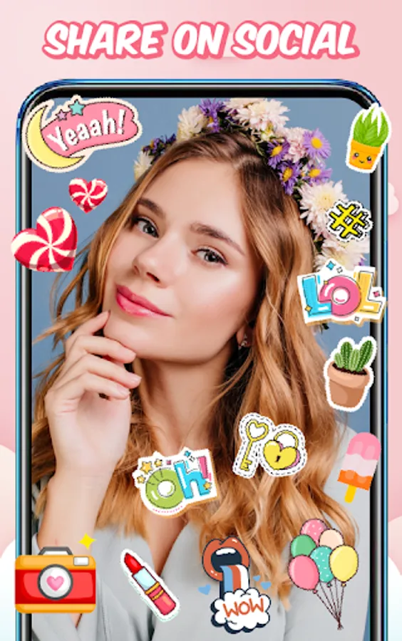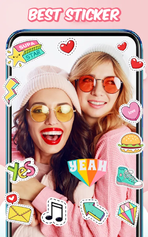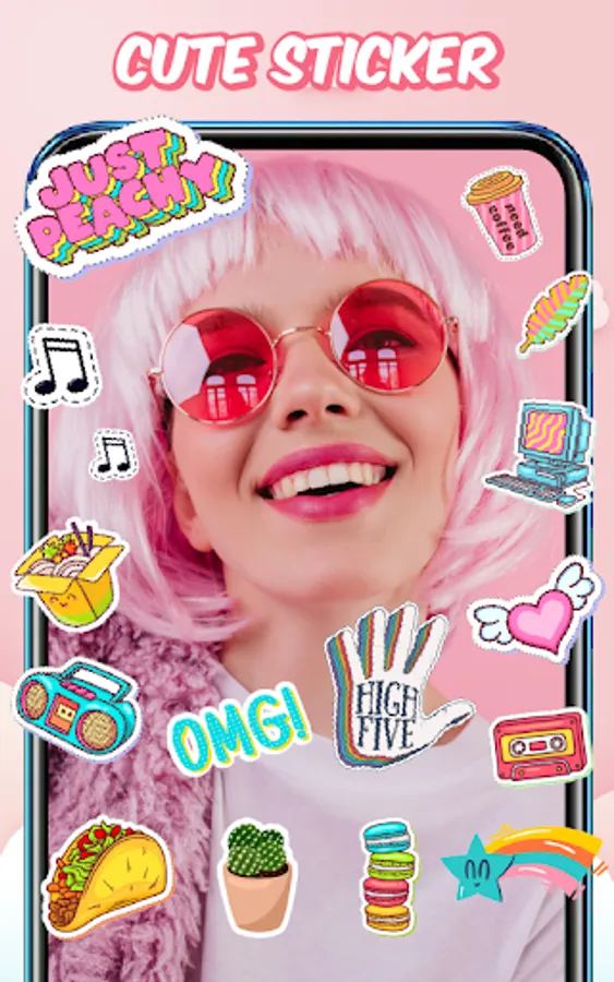 Meet the stickers. Which girls want to dress up their photos to show off their friends? According to your style Here we have some cute stickers. Neon stickers Wide selection Decorate photos, cute stickers, decorate photos, decorate photos, stickers in a variety of styles, many colors, various styles, add trendy colors to your photos with beautiful, cute frames and many chic filters. Brighten up photos With ease of use With a cute sticker photo editor