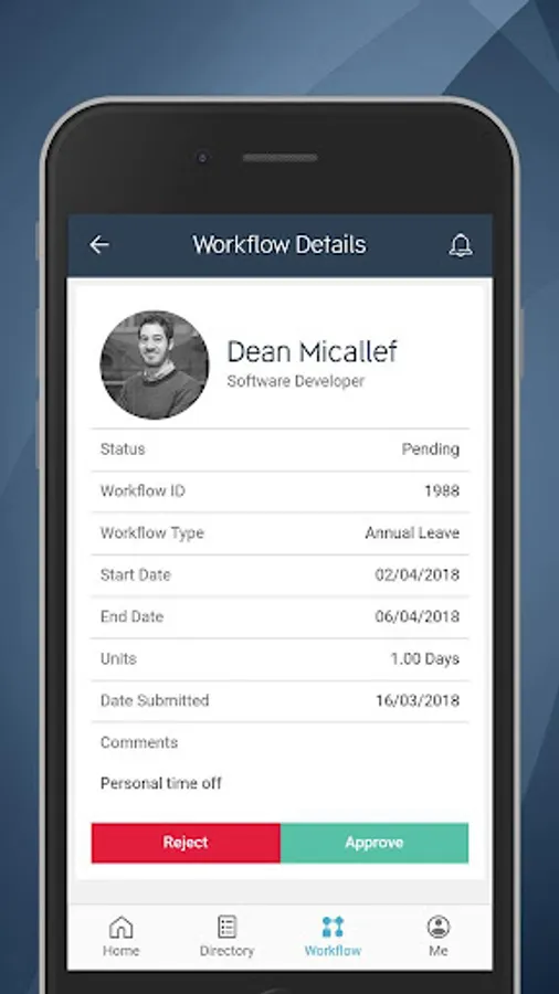 Employees can review their leave balance and history, and are able to submit, update and cancel leave requests from their mobile. Managers can review and approve time off requests