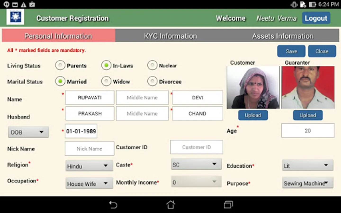 "Micro Lekha" (Lekha is a Hindi word meaning accounting or finance), is a 3G enabled Android application which works perfectly in all 7 inch Tablets and is powered by Qualcomm Technologies. This application can be customized to match the needs of any Micro Finance Institution (MFI). Although the present application has been developed in English, it can be customized to any local language. This app can be used for performing the day-to-day field operations of an MFI. The operations include Registration of Customers, Compulsory Group Training (CGT), Group Recognition Test (GRT) and Repayment Collection. All necessary Know Your Customer (KYC) documents required for processing of a loan are captured and submitted through the app. Front line workers are the prime users of this app.