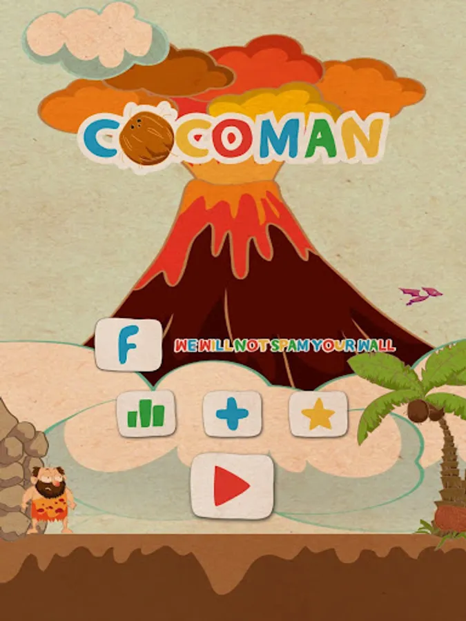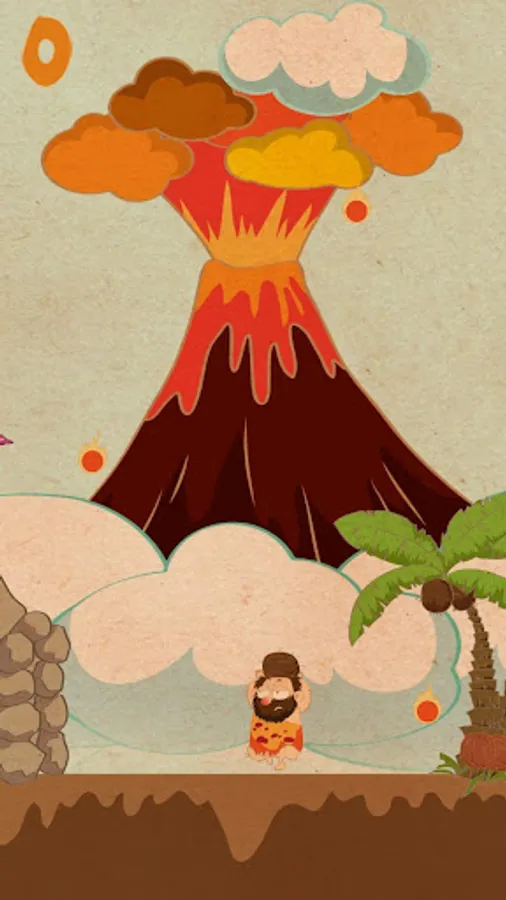 One day, the volcano woke up! Little boys and girls are hungry! Our poor caveman, Mr. CoCo has to run out to harvest his favorite food for his children!