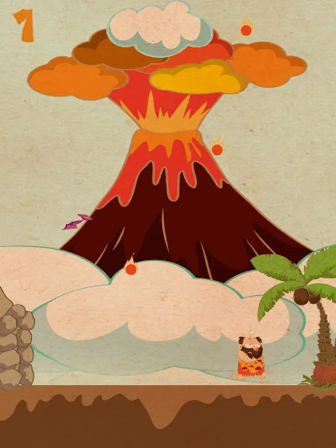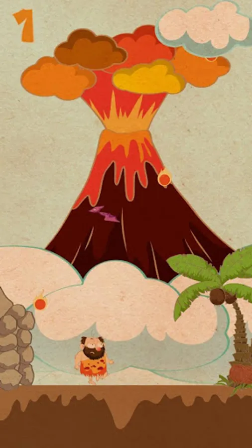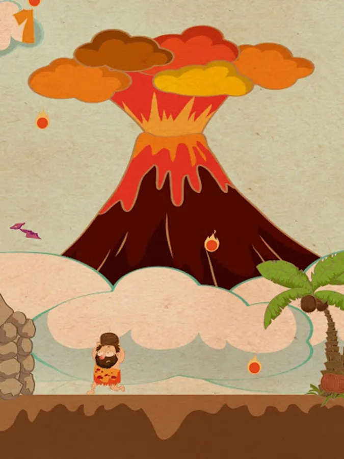 Rule 1: Simple tap control! With each tap on the screen, the prehistoric caveman changes direction while running. You have to pick up the fruit and bring back to the cave to gain points. Wait! Avoid falling rocks.