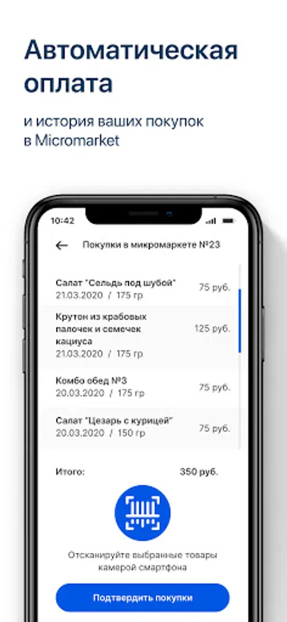 The application will allow you to find the closest vending machines of the MicroMarket network on the city map and contactlessly pay for purchases using a pre-linked bank card. If you are an employee of a partner company, enter a unique organization code to pay for purchases from a corporate account.