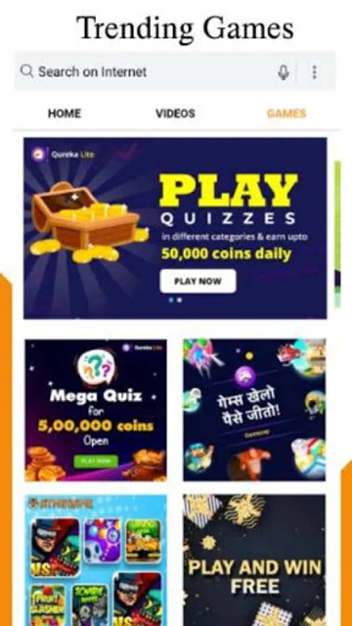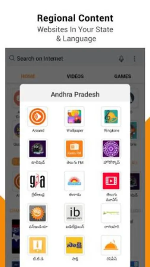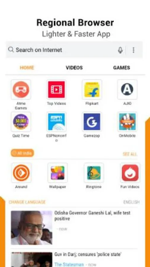 User-friendly Home page design in-line with the needs of the Indian consumer. Serves different types of content- latest news, videos, games, etc in Regional Indian Languages