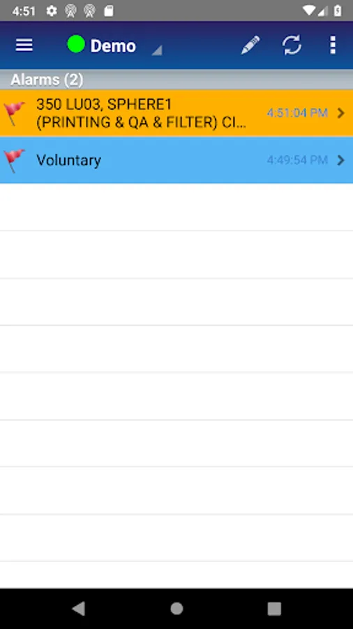 You have the status of the current alarms on each site, with all their associated information (message, priority, triggered time, reset time, acknowledgment time)