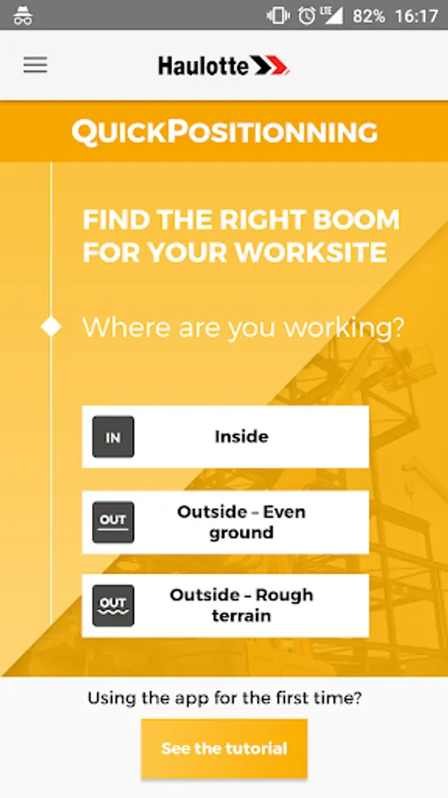 The Quick Positioning app helps you choose the most suitable boom lift for the work area you need to access.