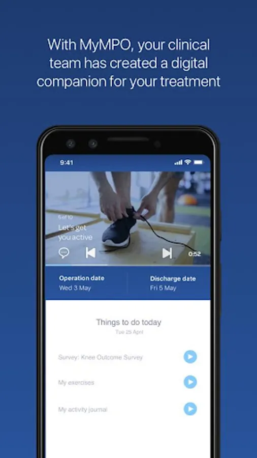 MyMPO™ is your digital companion during your journey of total joint replacement, with daily reminders and notifications just one finger away from you.