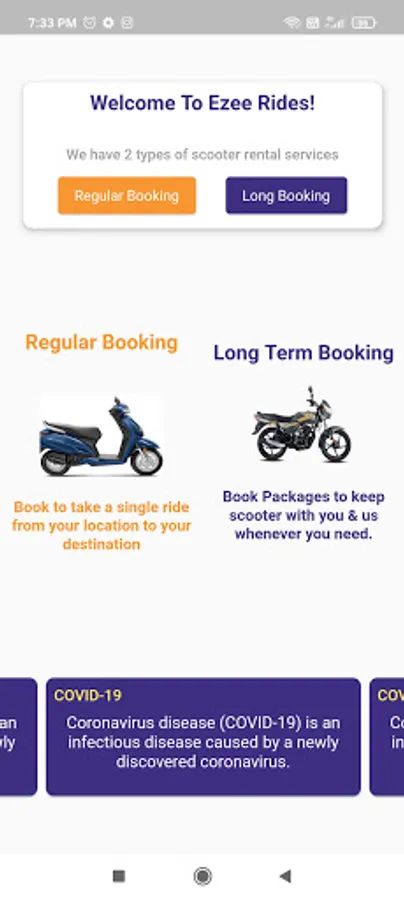 Ezee Rides provides activa and bikes on rent facilities for a regular and long term rides. With amazing offers and no add-on charges for 2 helmets, this platform has aimed to make self-drive two-wheelers accessible to people across India and help them enjoy a bike ride experience without having the hassles of owning and maintaining one. The booking can be done from application. It also has an application for the vendors through which they can manage their fleet and accounts. Rent a bike or scooty with most flexible daily, weekly & monthly Ezee Rides rental plans at most affordable price with ultimate advantage of free helmet & easy booking quality bikes. Online booking, sanitized vehicles, free coupons, referral codes and multi days advantageous rides