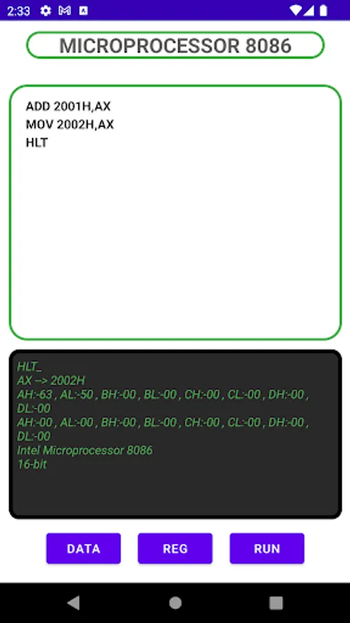 This is the Microprocessor 8086: Simulator for Simulating 8086 Assembly Code, Translating Assembly code to Machine code, Translating Machine code to Assembly code Just in a moment.