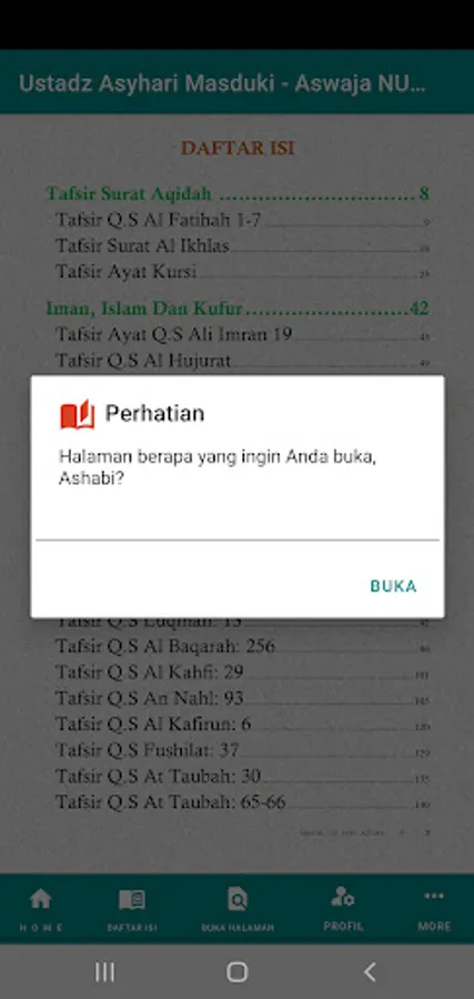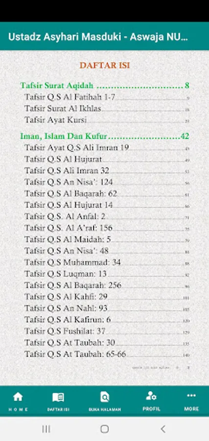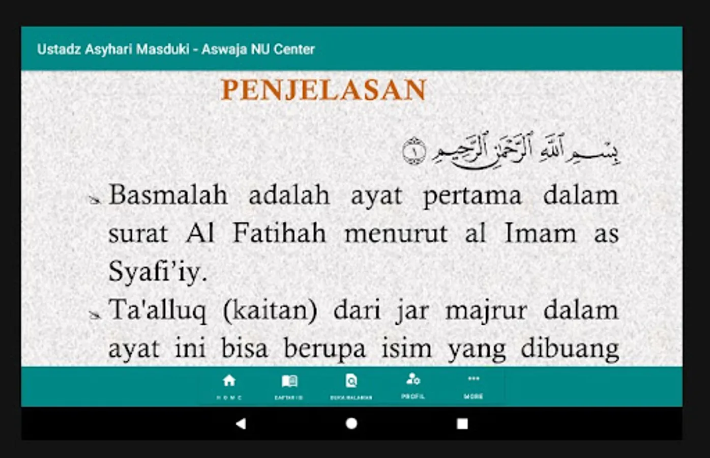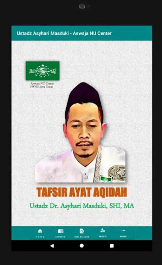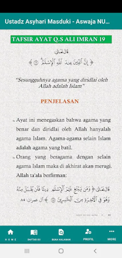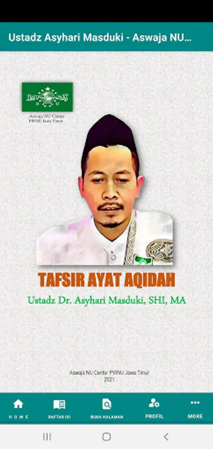 Contains interpretations of verses related to the Aqidah Ahlussunnah Wal Jama'ah compiled by Ustadz Asyhari Masduki, a member of the Research Team for Aqidah Aswaja NU Center PWNU East Java.