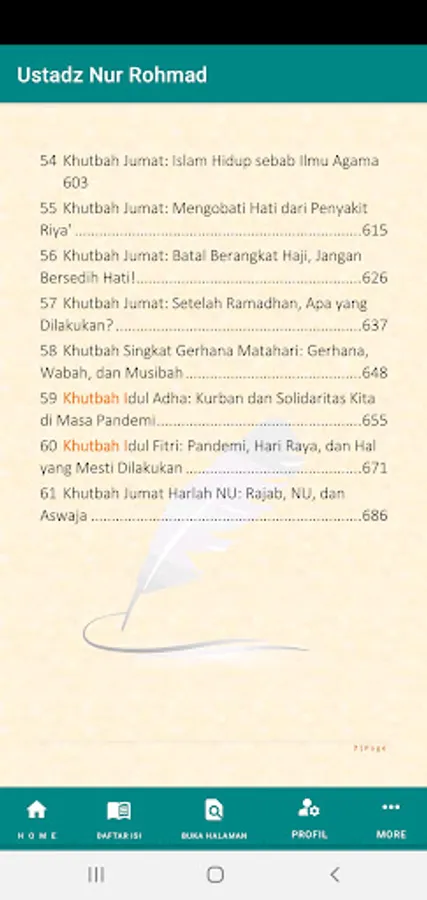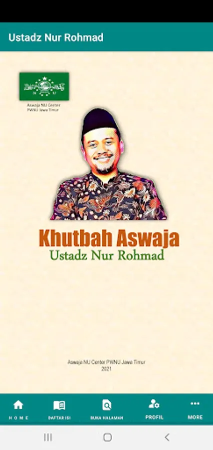 The application contains more than 50 texts of Friday sermons, eclipse prayers, Eid al-Fitr and Eid al-Adha. Compiled by Ustadz Nur Rohmad, Research Team Aswaja NU Center PWNU East Java.