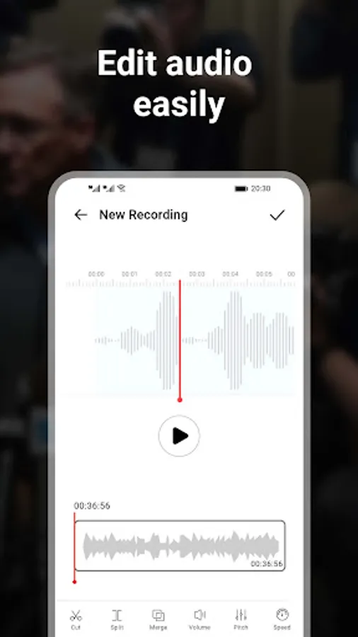 But that's not all! With Voice Recorder's simple and fast audio editing feature, you can easily cut out any unnecessary parts of your recording, making it more streamlined and efficient.