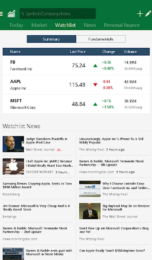Add your favorite stocks, mutual funds, and ETFs to your personal watchlist. Get stock quotes, charts, trends, recommendations and detailed company profiles. Sign in to save your preferences.
