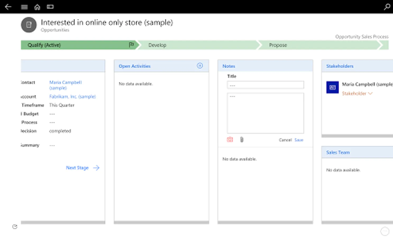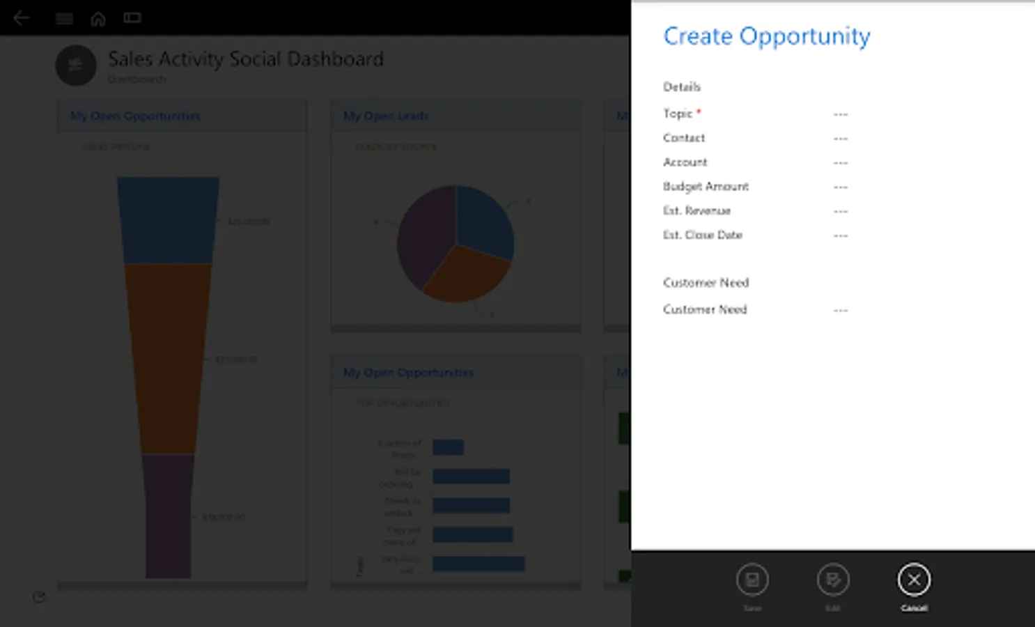 Dynamics 365 provides salespeople, agents, and supervisors with the best tools for managing their data, and updating records and status both online and offline. A seamless set up experience enables you to configure the app once and deploy it everywhere – on mobile, desktop, or tablet.