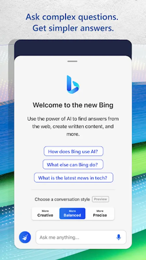 • Artificial intelligence that works for you. Get comprehensive answers with Bing with the same technology behind ChatGPT