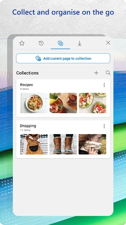 • Collections makes it easier than ever to collect and organize content you find on the web across your signed-in devices.