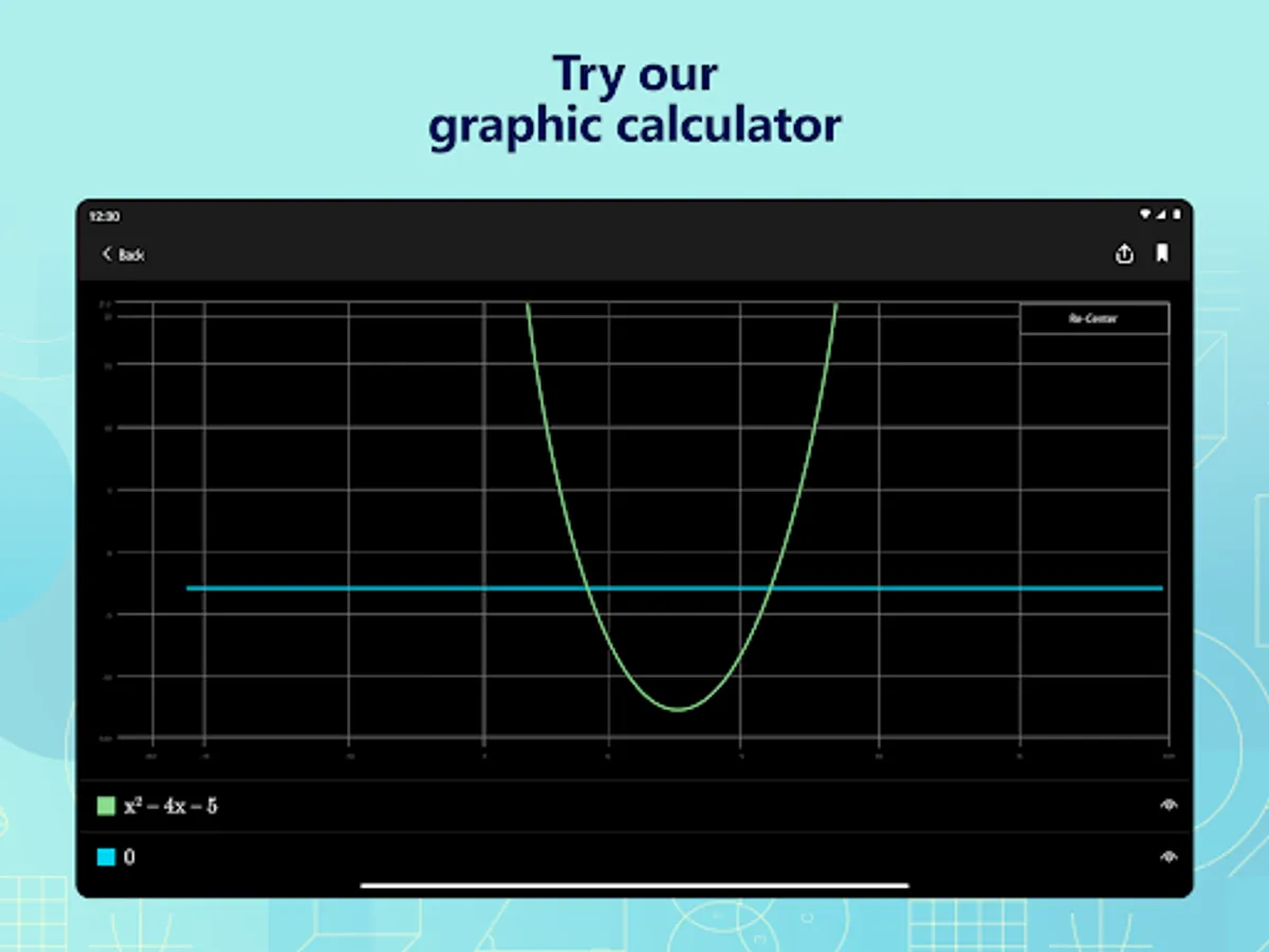 Learn more about Microsoft Math Solver on our website: https://math.microsoft.com/ Contact us at mathsupport@microsoft.com or @microsoftmath on social. Looking forward to your feedback!