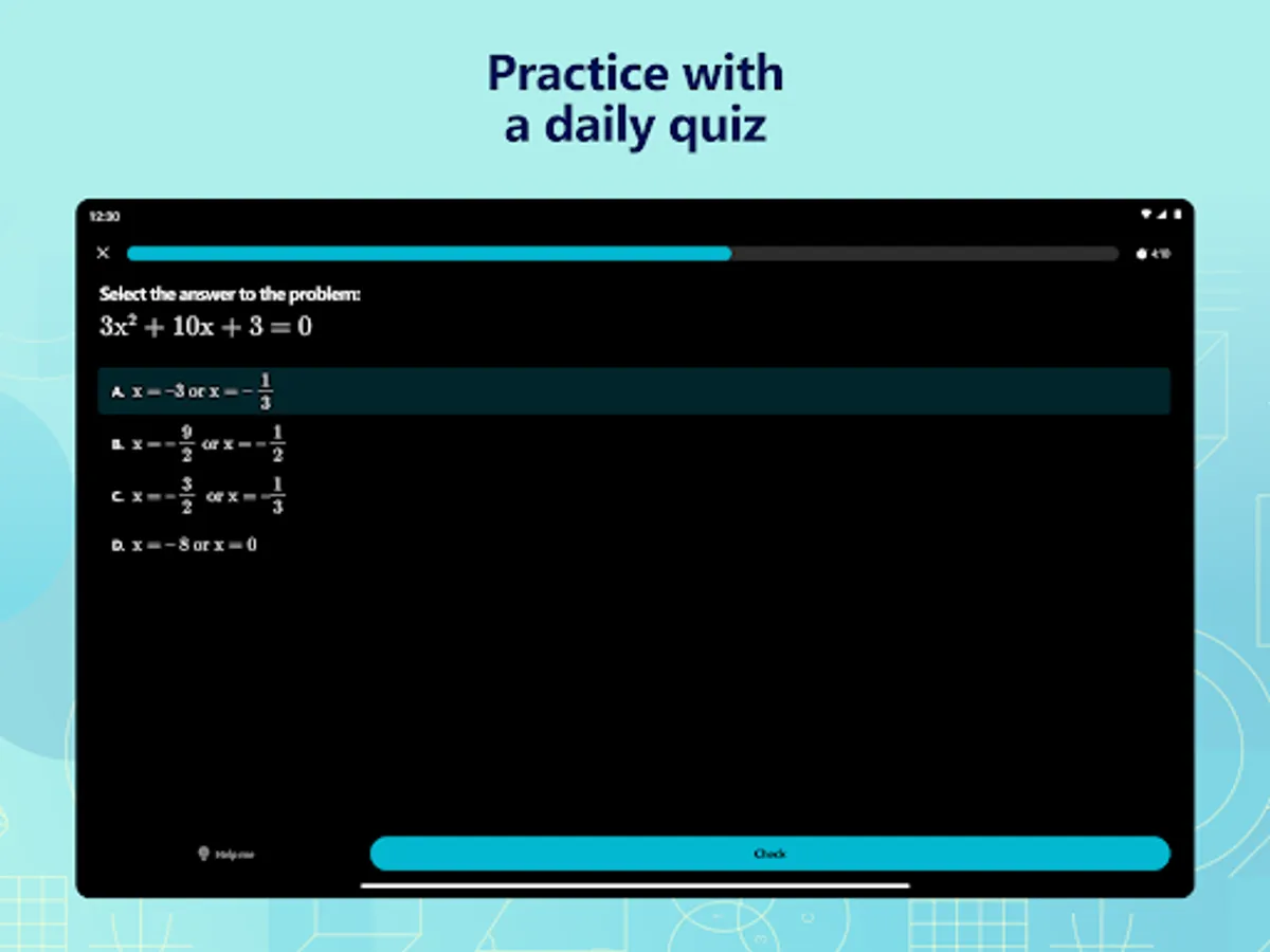 Use your camera to scan the problem, write it out on our whiteboard, or enter it in our calculator. Whatever you choose, Math Solver will help you solve it instantly with a detailed step-by-step explanation, interactive graphs, or similar problems from the web. And when you’re ready for more practice, you can take a daily quiz, play a game, or explore video lectures and articles.