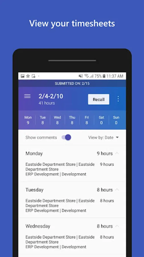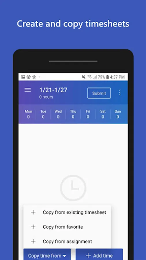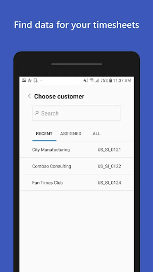 The Microsoft Dynamics 365 Project Timesheet mobile app enables users to submit and approve timesheet for projects. This mobile app surfaces the timesheet functionality that resides in the project management and accounting area of Dynamics 365 for Finance and Operations, improving user productivity and efficiency as well as enabling timely entry and approval of project timesheets.