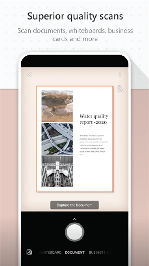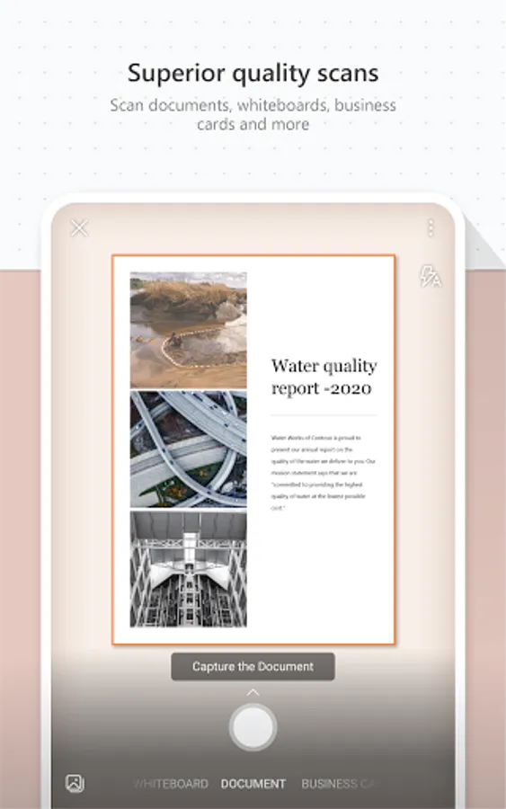 Microsoft Lens (formerly Microsoft Office Lens) trims, enhances, and makes pictures of whiteboards and documents readable.