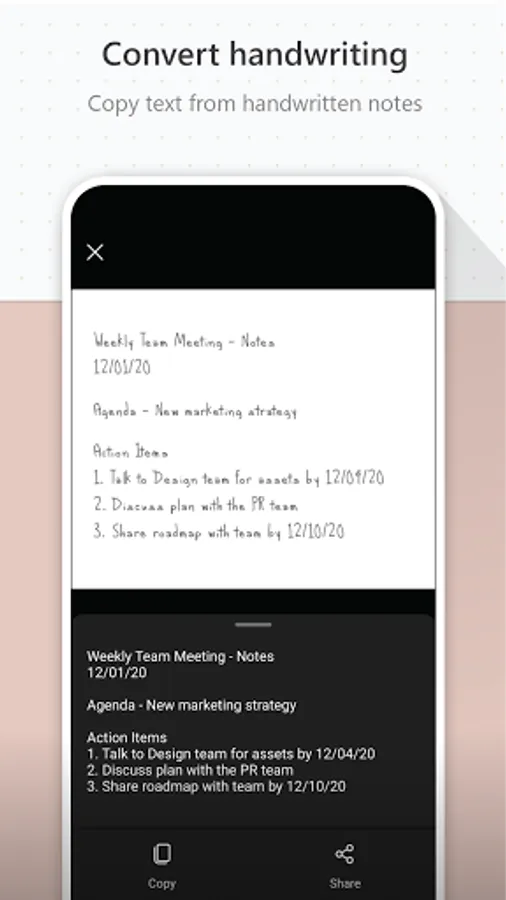 • Scan handwritten notes to digitize and edit later (works with English only)