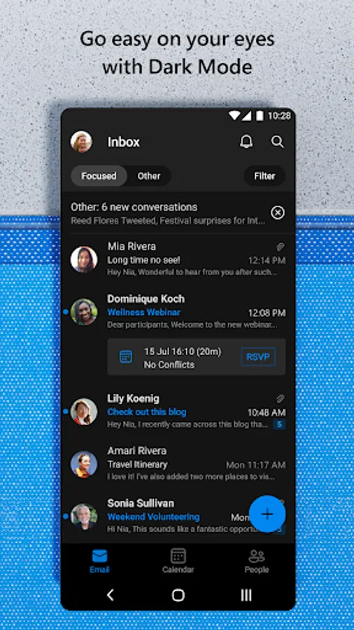 Inbox management is easier than ever. Do more from one inbox. Outlook Lite empowers more individuals, schools, universities, and small businesses with low-resource mobile phones. Organize your calendar, schedule and book meetings all from one device. Whether you’ve connected your small business email, school email or personal email, Outlook Lite protects you with security for all your needs.