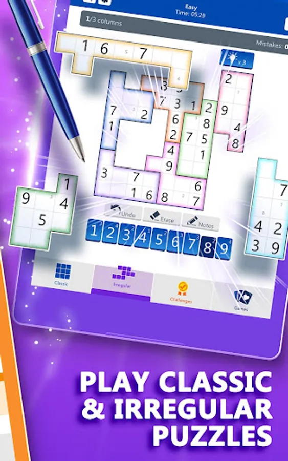 • Freshly generated puzzles every game across 6 levels of difficulty for Classic and Irregular Sudoku