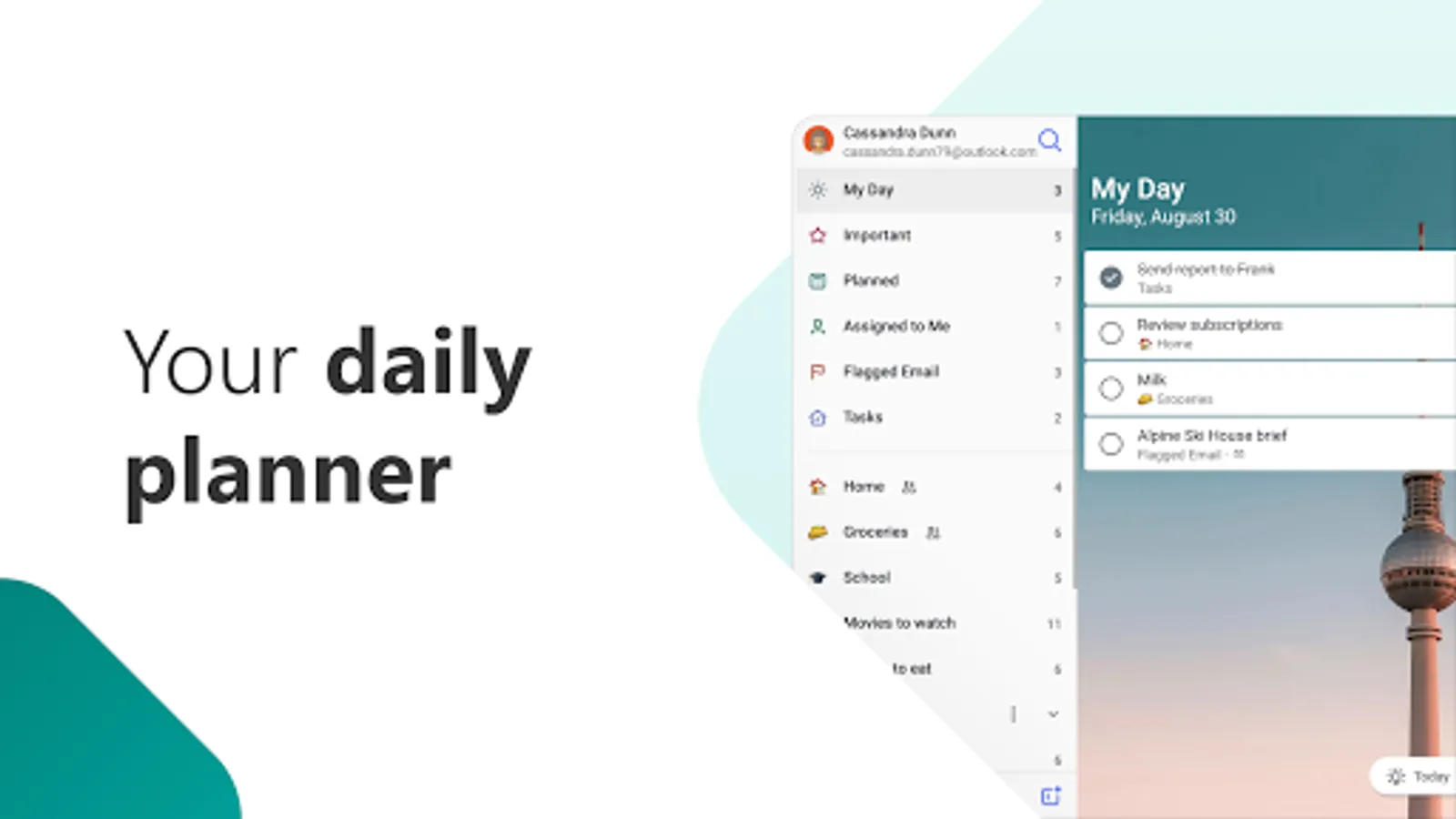 Microsoft To Do is a task management app to help you stay organized and manage your day-to-day. You can use Microsoft To Do to make shopping lists or task lists, take notes, record collections, plan an event, or set reminders to increase your productivity and focus on what matters to you. Microsoft To Do makes it easy to stay organized and manage your life.