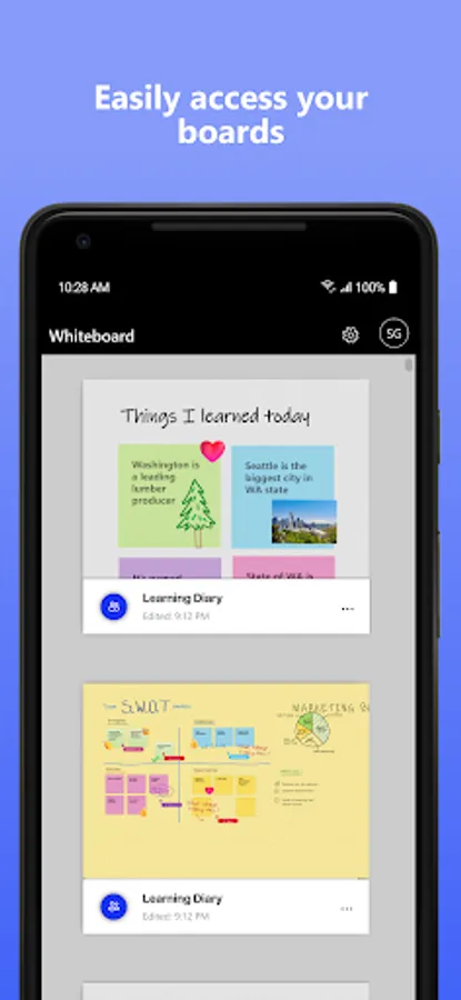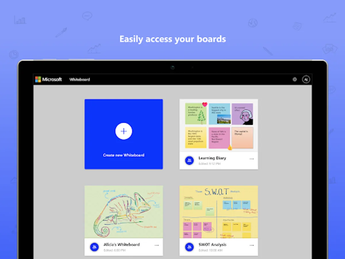 Forget having to take photos of your whiteboards, or marking them with “Do Not Erase.” With Microsoft Whiteboard, your brainstorming sessions are saved automatically to the Microsoft cloud, so you can pick up where you left off, whenever – and wherever – inspiration strikes next.