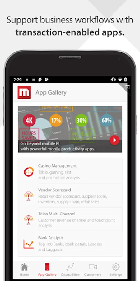 • Monitoring your organization’s performance in the palm of your hand anytime and anywhere is a powerful business capability—but interacting with that information to approve requests, submit orders, change plans, and capture information as part of a business workflow takes that power to a new level.