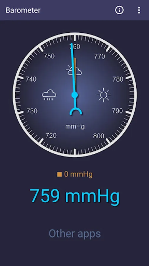 Here is a simple application that shows you the current value of the atmospheric pressure. This accurate measuring tool (portrait orientation, Android 5 or newer) works on the tablets, phones and smartphones that are connected to the Internet (even if they do not have a built-in pressure sensor). You can use the barometer to track the changes in local pressure (as they indicate the weather trend) and to see some other important meteorological parameters.