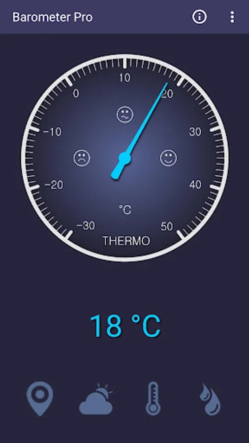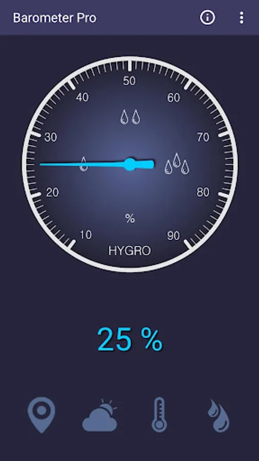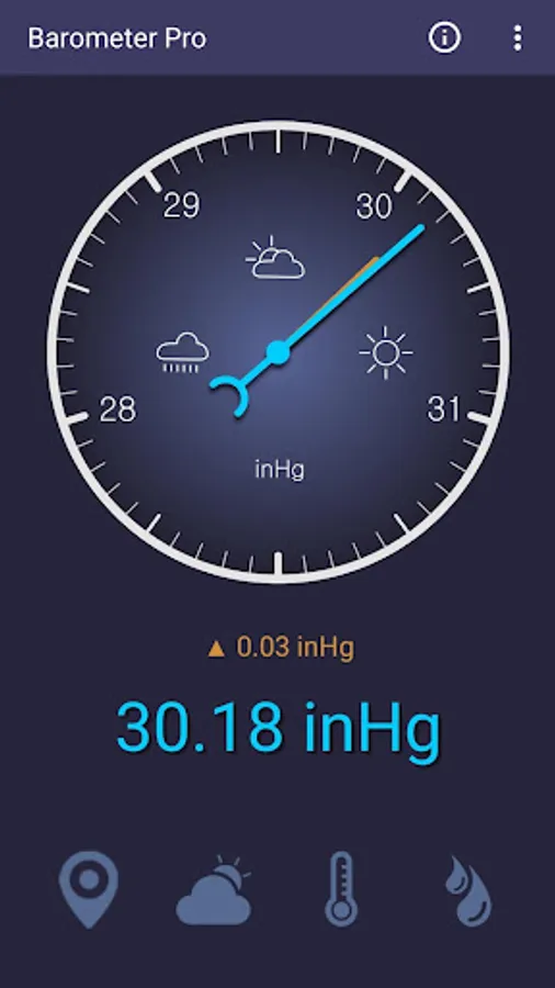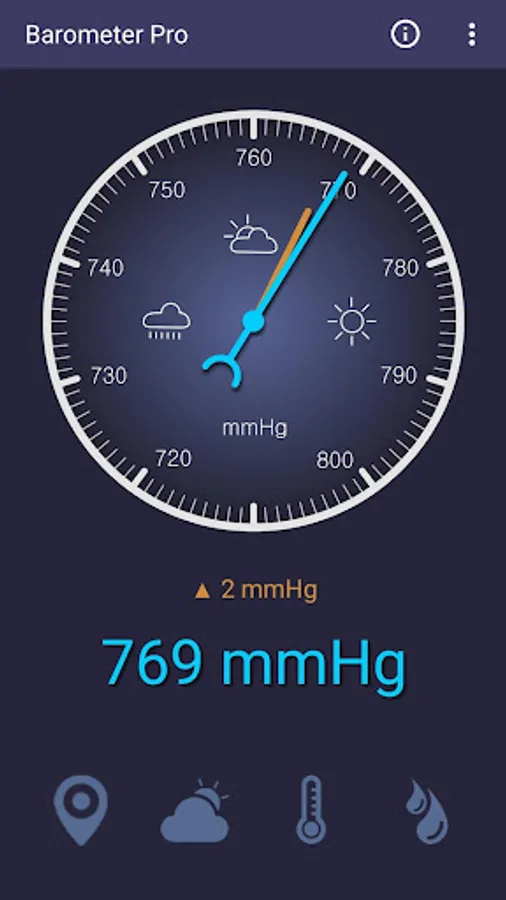 Here is a nice application that shows you the current value of the atmospheric pressure. This accurate measuring tool (portrait orientation, Android 5 or newer) works on the tablets, phones and smartphones that are connected to the Internet (even if they do not have a built-in pressure sensor). You can use Barometer Pro to track the changes in local pressure (as they indicate the weather trend) and to see some other important meteorological parameters.