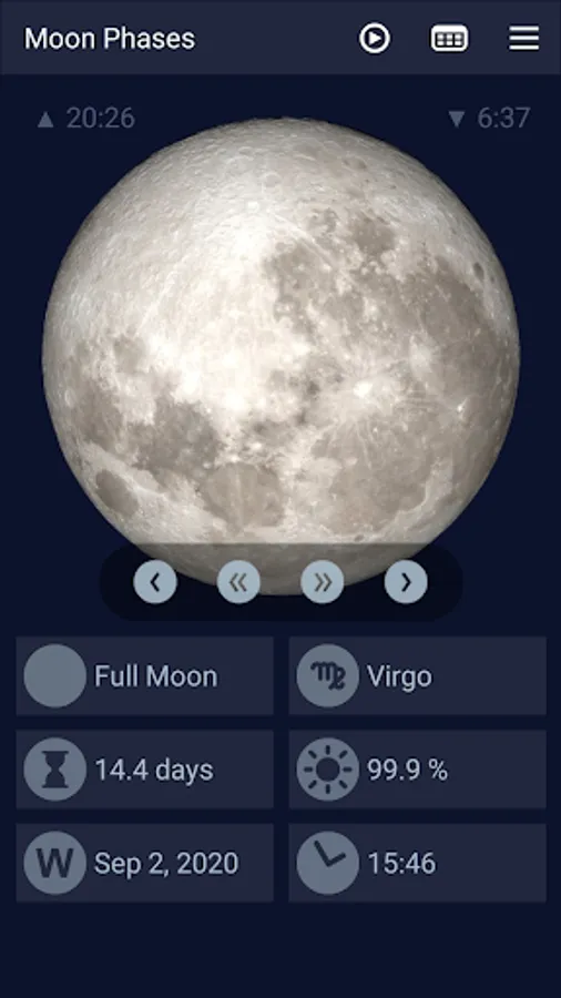 This application presents the phase of the Moon, the luminosity of its surface and the official moonrise / moonset times that correspond to your time zone / location. Moreover, you can see the lunar phase for any date (starting with January 2020) and the exact days when the lunar eclipses (total, partial or penumbral) will occur. The age (relative to the synodic period), the zodiac sign and a 3D view of our closest cosmic body complete the list of Moon Phases' features and make this app a must-have for astronomers and astrologers. Also, tracking the phases of the moon can help hunters and fishermen plan their trips or know the best time to hunt or fish.