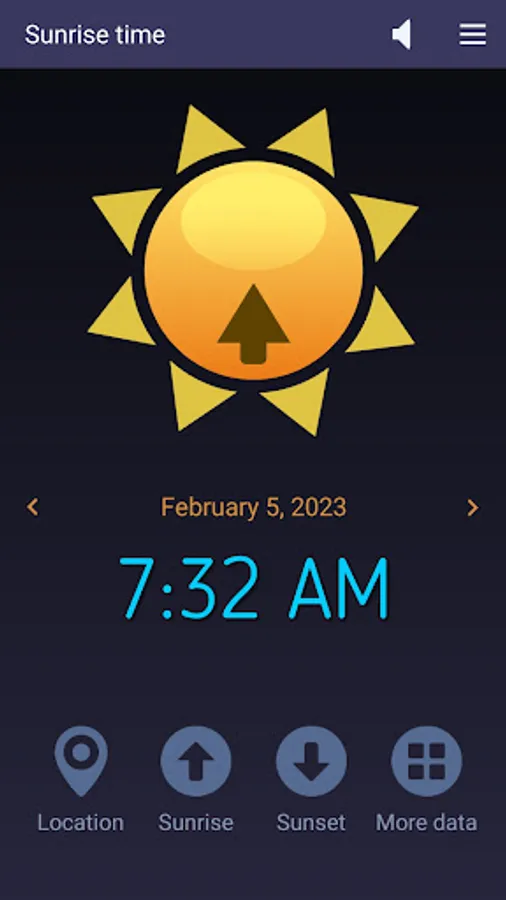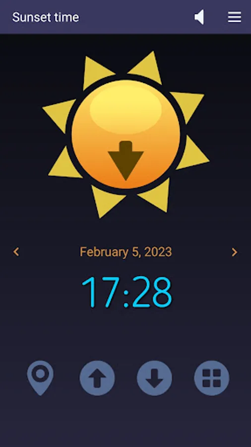 - To find the sunset time, tap the Sunset button.