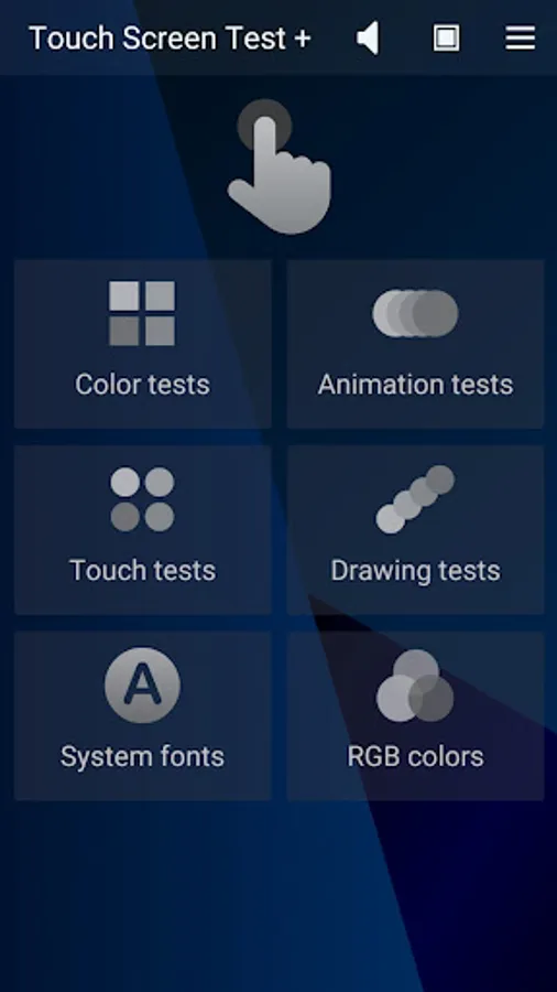 Touch Screen Test + is a professional app that is very useful when you want to quickly assess the quality of your smartphone screen and its graphic capabilities, or when you want to fix some dead pixels it may have. There are four big groups of procedures: COLOR, ANIMATION, TOUCH, and DRAWING tests; in addition, SYSTEM FONTS, RGB COLORS, Display information and Repair pixels complete the package of tests and make this free application a must-have software for most Android smartphones and tablets. You can easily find out which is the screen resolution, pixel density, aspect ratio, or current level of brightness; also, you can find out the frame rate for other 2D and 3D applications or if the gravity/acceleration sensors are working fine. Run all tests and you can rapidly decide, for example, if the eye comfort mode must be enabled to prevent eye strain, if the brightness level requires some adjustment or if the touch sensitivity is still good all over the screen's surface.