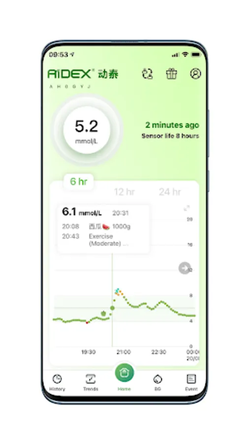 You can use the AiDEX App to: Check your glucose value every 5 mintues, instead of a routine fingerstick.* View your current glucose reading, trend arrow, and history. Add notes to track your food, insulin use, medicine and