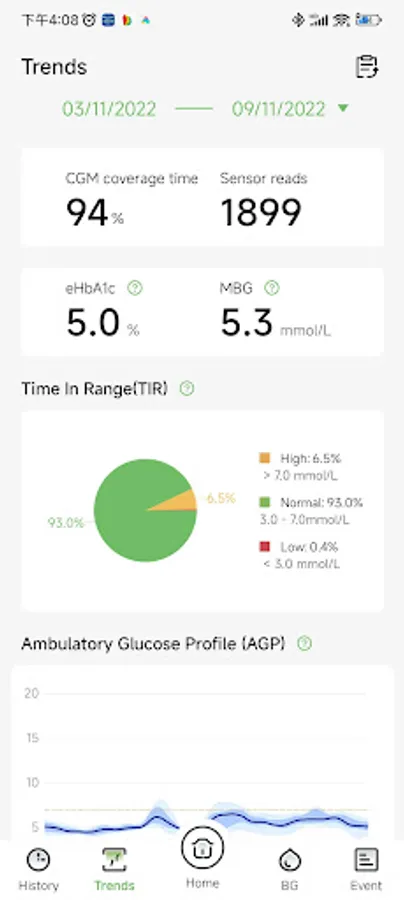 •See glucose reports, including your Ambulatory Glucose Profile.
