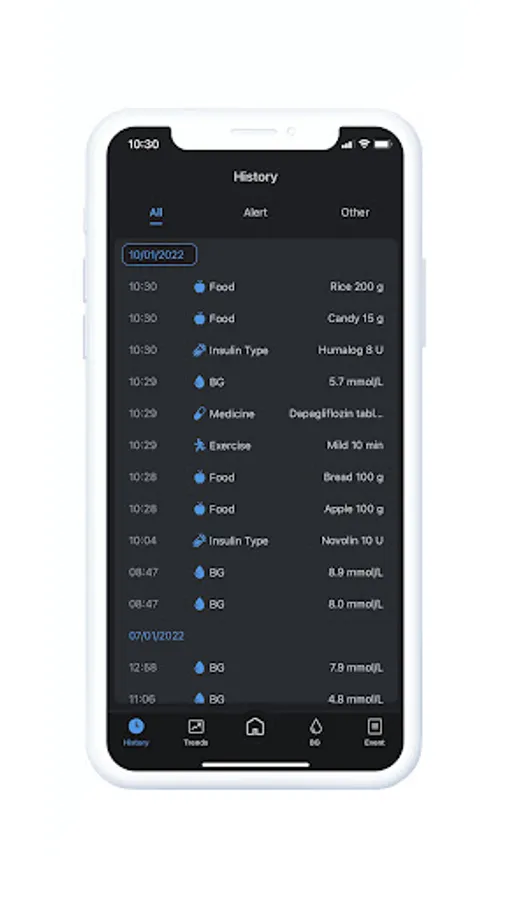 · Add notes to track your food, insulin use, medicine, and exercise.
